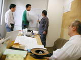 永芳閣の70周年に向けて、新企画が進行中です。部屋も料理も新たな挑戦。ミーティング中も、中村の手はドローイングしながら、プランを練り上げていきます。