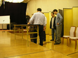 こちらは、永芳閣の新館ベッドルームを、なんと個室ダイニングにするプランを検討中。「これくらいのテーブルだと。。。」「こんな感じでサービスできるか。。。」と、実際に立って見て考えます。現場主義です。
