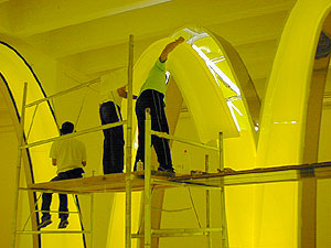 工事現場の壁に約3・5×5・5mの大画面で映しました。 ![]() ![]() ![]() ![]() |